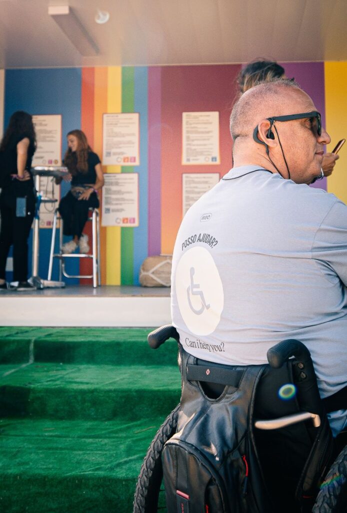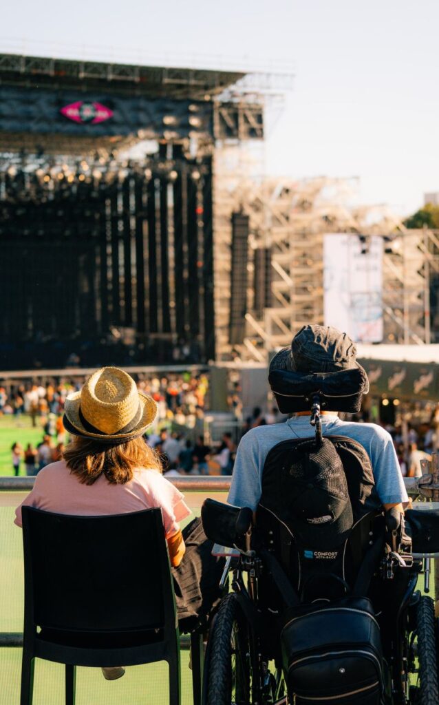 – Espaços na frente do palco ao lado de colunas para pessoas surdas sentirem a vibração das músicas